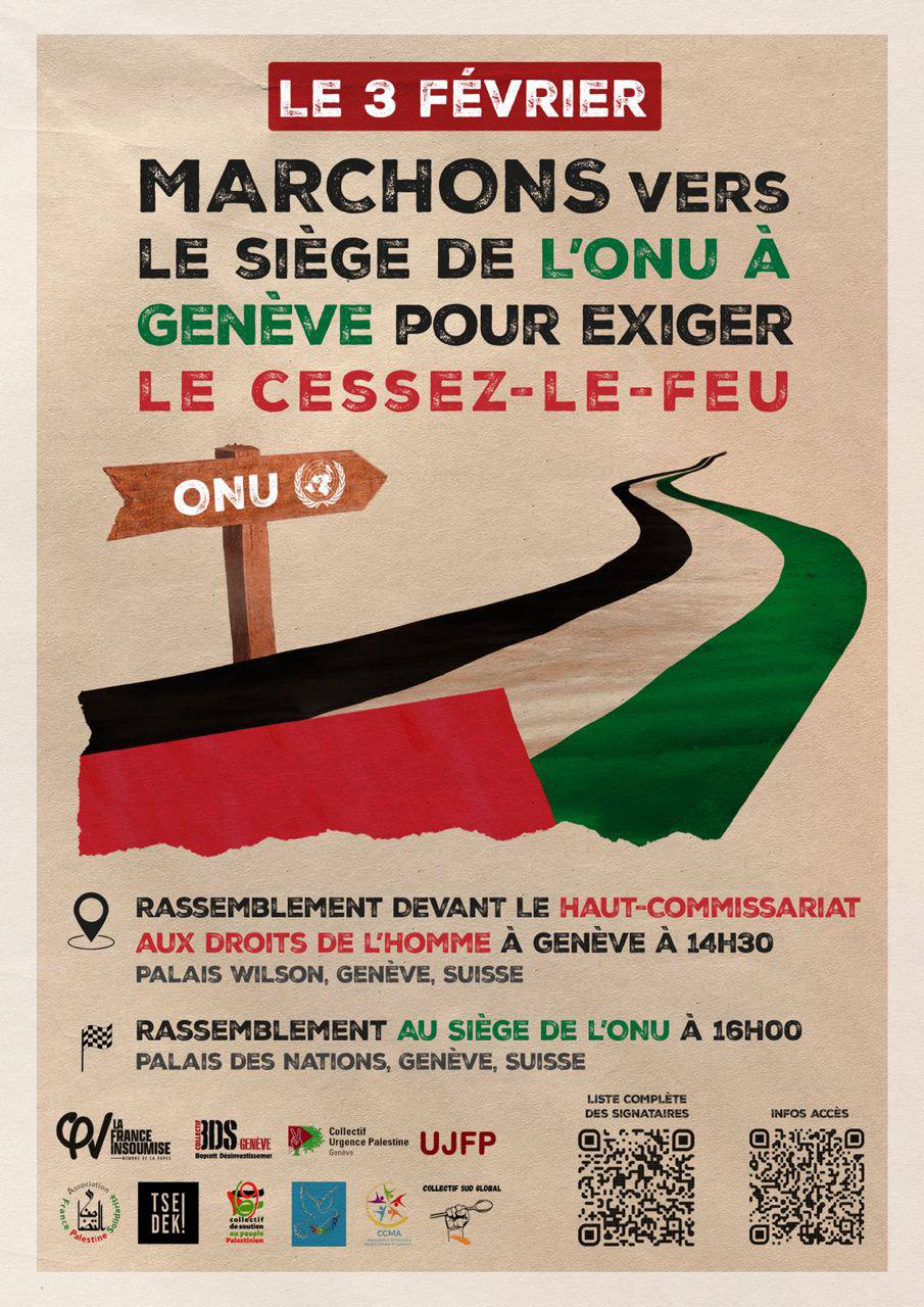 Au chapitre de la résistance au sionisme une marche sera organisée auprès de l’ONU à Genève le week-en du 3 février.