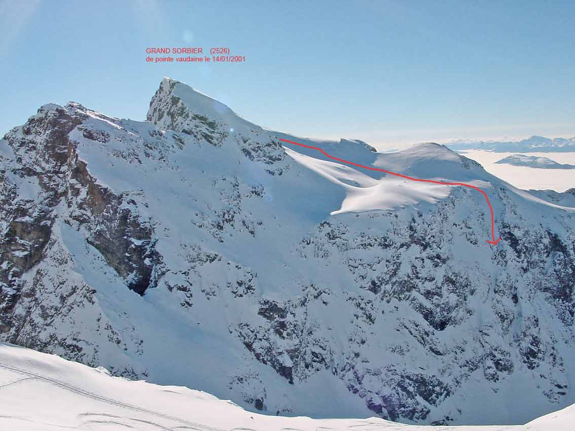 – monté le 21 d’abord à la pointe vaudaine (A6) pour jumeler, puis au sorbier (A1 à l’envers). Quand quelque chose par du sommet, il est immédiatement attiré par les première combes nord qui tombent très haut (2300 m) vers le col sorbier (retour de A4). Vu l’orientation, pas grand’chose à espérer avant juillet.