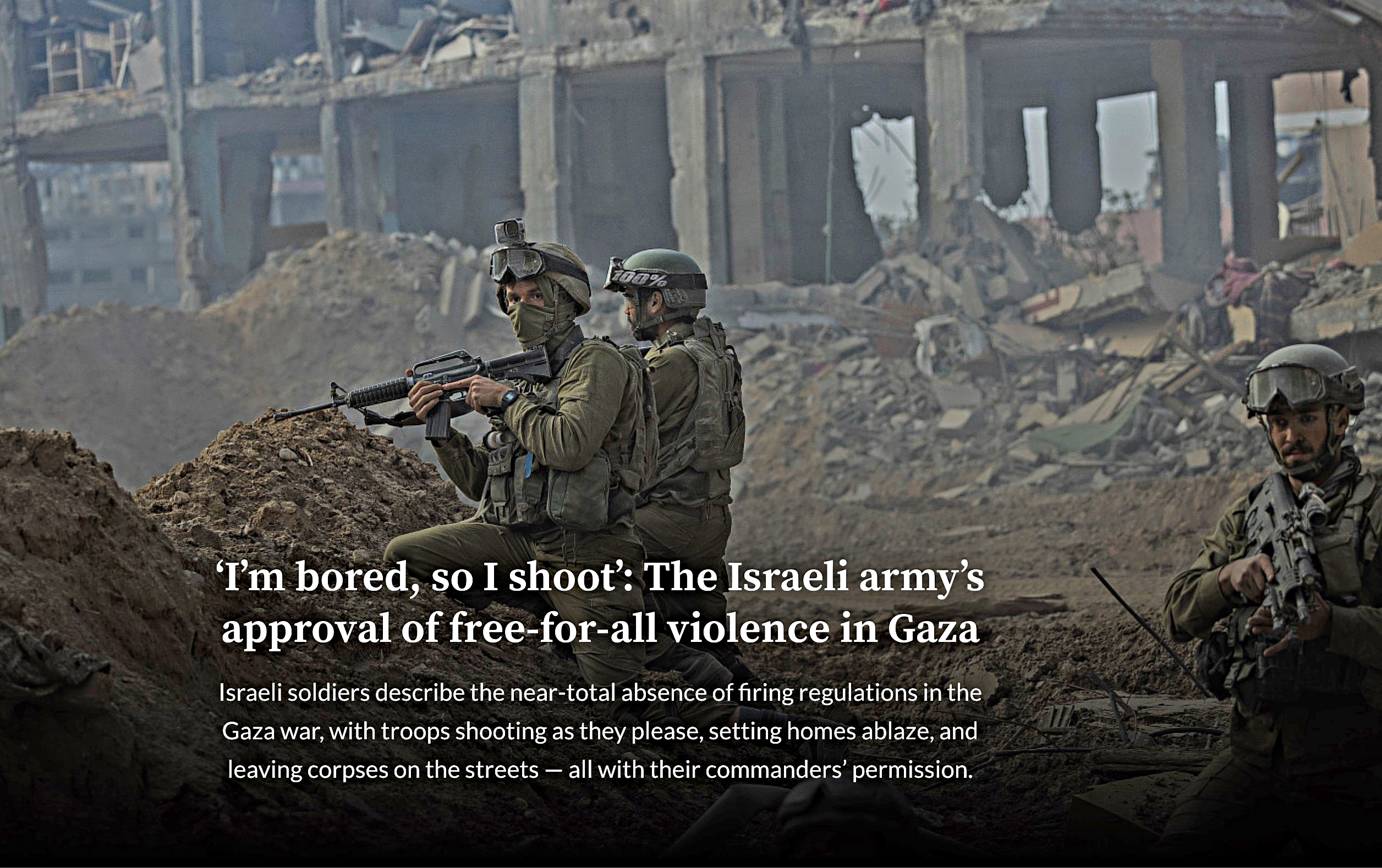 A Gaza les "règles d’engagement" se sont mises en conformité avec la réalité. "Quand vous vous ennuyez, pas de problème vous pouvez tirer sur qui vous voulez" comme le rapporte le site de contre-information israélien +972.