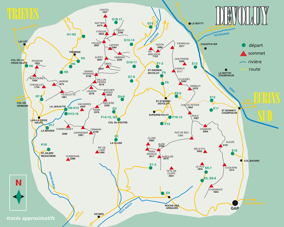La répartition est assez équilibrée entre les trois massifs : 55 en Chartreuse, 64 en Dévoluy, 63 en Vercors.