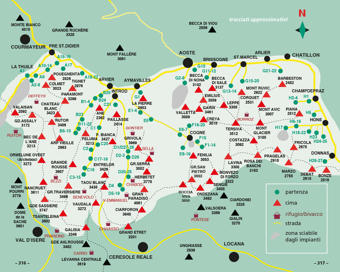 – Le schede tecniche descrivono nel dettaglio 184 itinerari di base (e 332 varianti), tracciati su 327 foto.