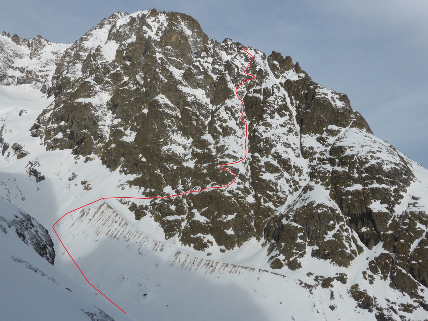 – 14/04/19, Pic de Chamoissière, épaule 3095m, "Y’a pas d’arrangement", face O, 900m, 4.3 / E2