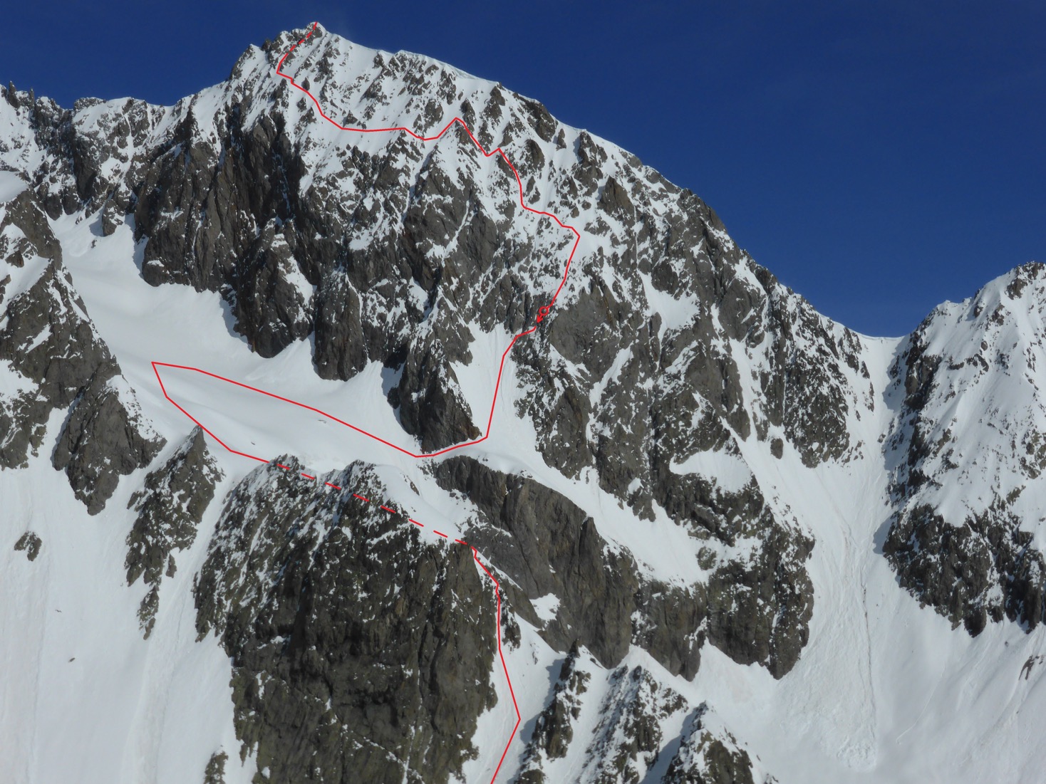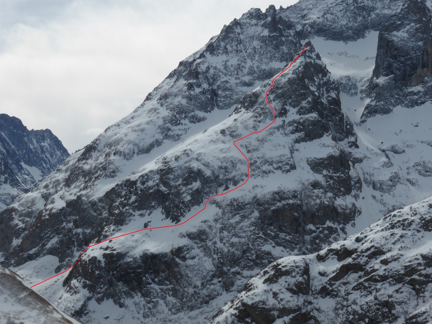 – 16/02/19, Pointe Gravelotte, 3387m, "T’es grave Lolotte", face NNE, 1 rappel de 30m, 1287m, 5.2 / E3 pour la partie sommitale