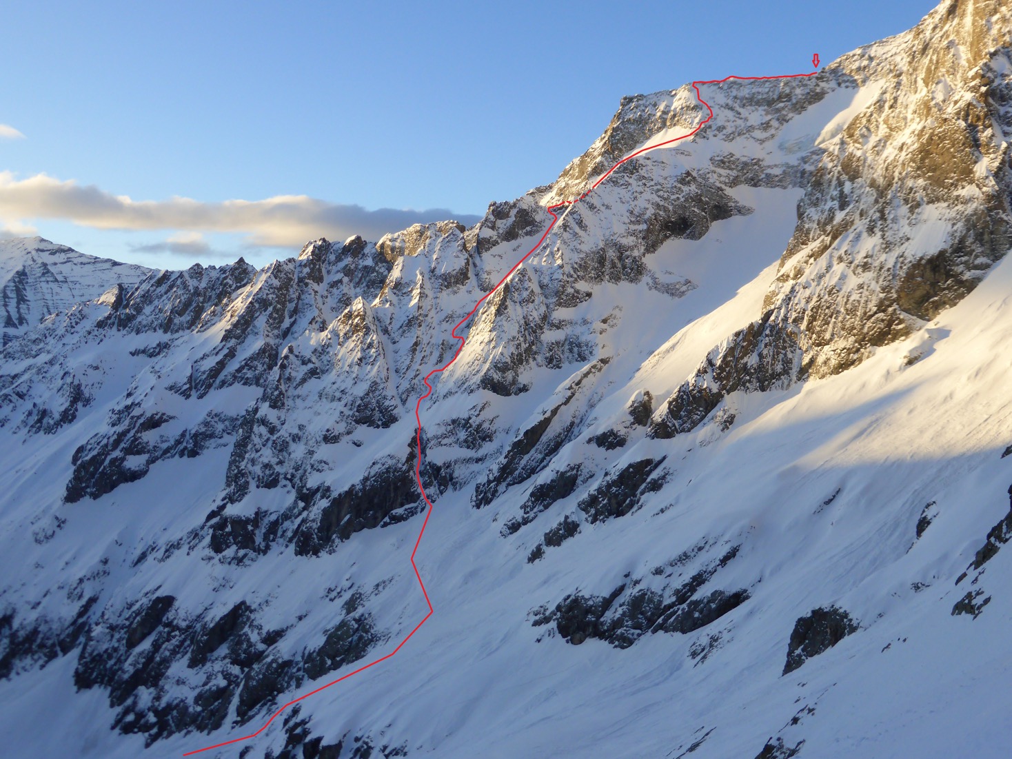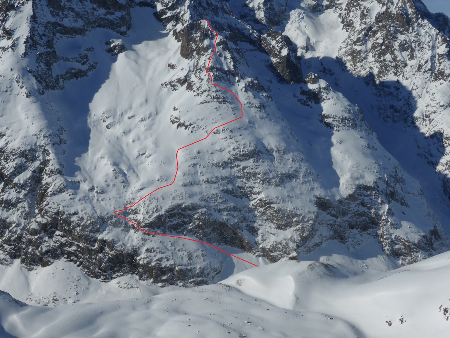 – 16/02/19, Pointe Gravelotte, 3387m, "T’es grave Lolotte", face NNE, 1 rappel de 30m, 1287m, 5.2 / E3 pour la partie sommitale