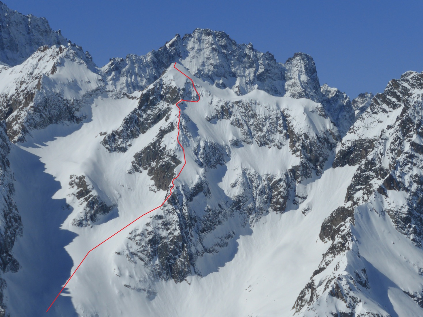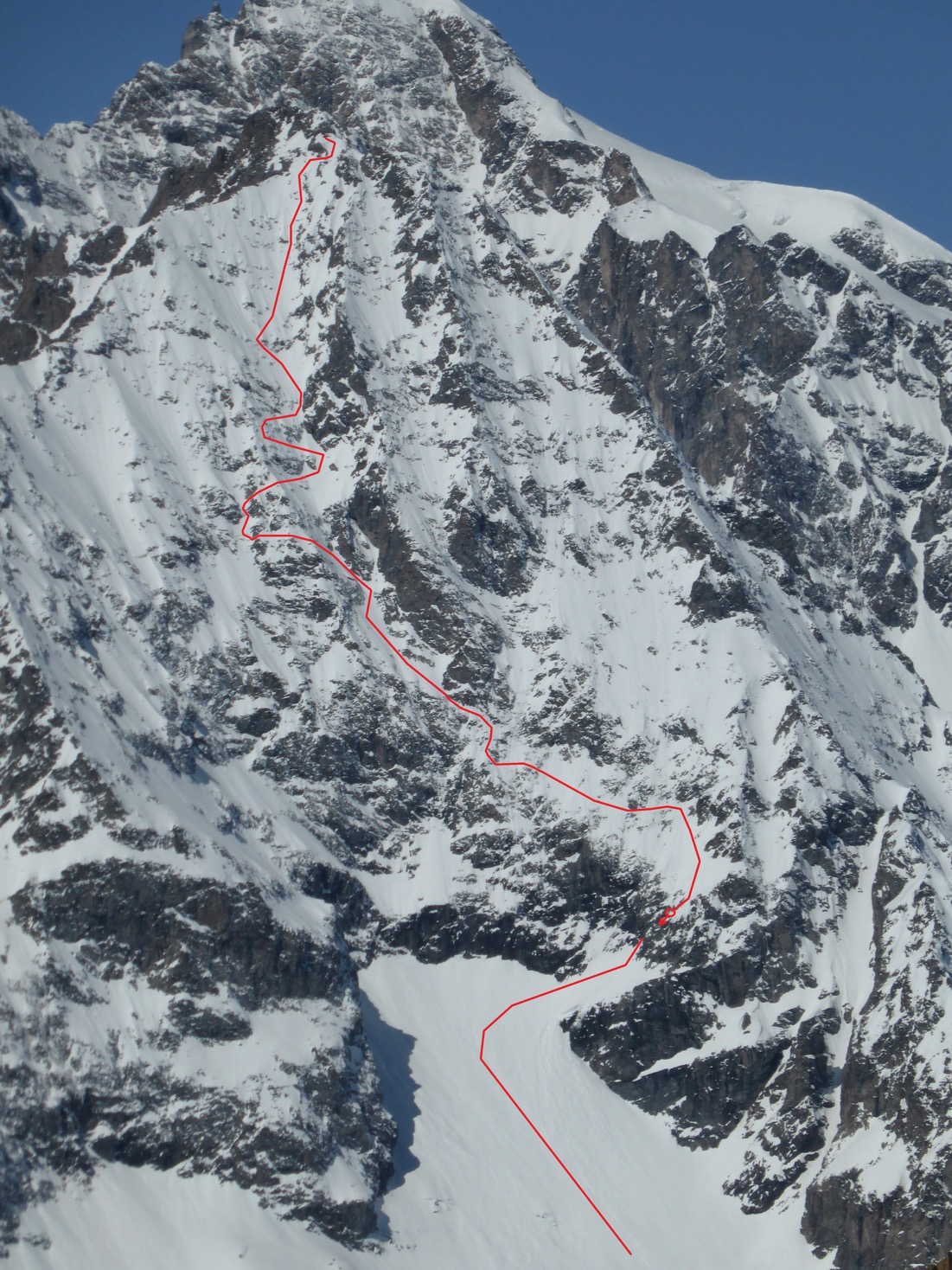– 14/04/19, Pic de Chamoissière, épaule 3095m, "Y’a pas d’arrangement", face O, 900m, 4.3 / E2
