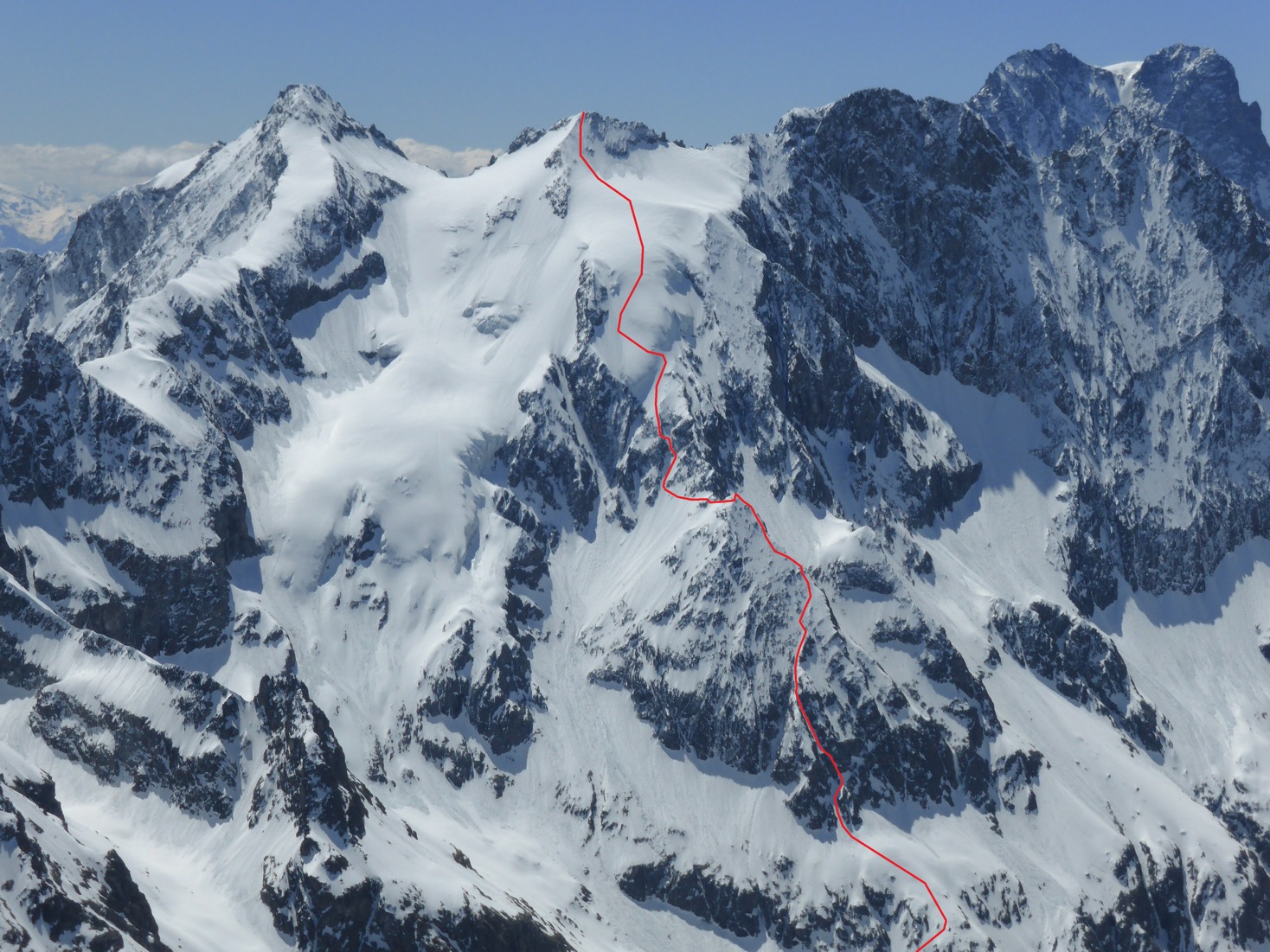 – 17/03/19, Pointe Nérot antécime Est, 3480m, “Heureux qui comme Ulysse”, face E, 1 désescalade de 20m, 2 rappels de 20m et 28m, 1380m, 5.2 / E3 pour la partie sommitale. Hommage à Ulysse Perrier qui skia le premier cette face en 2013.